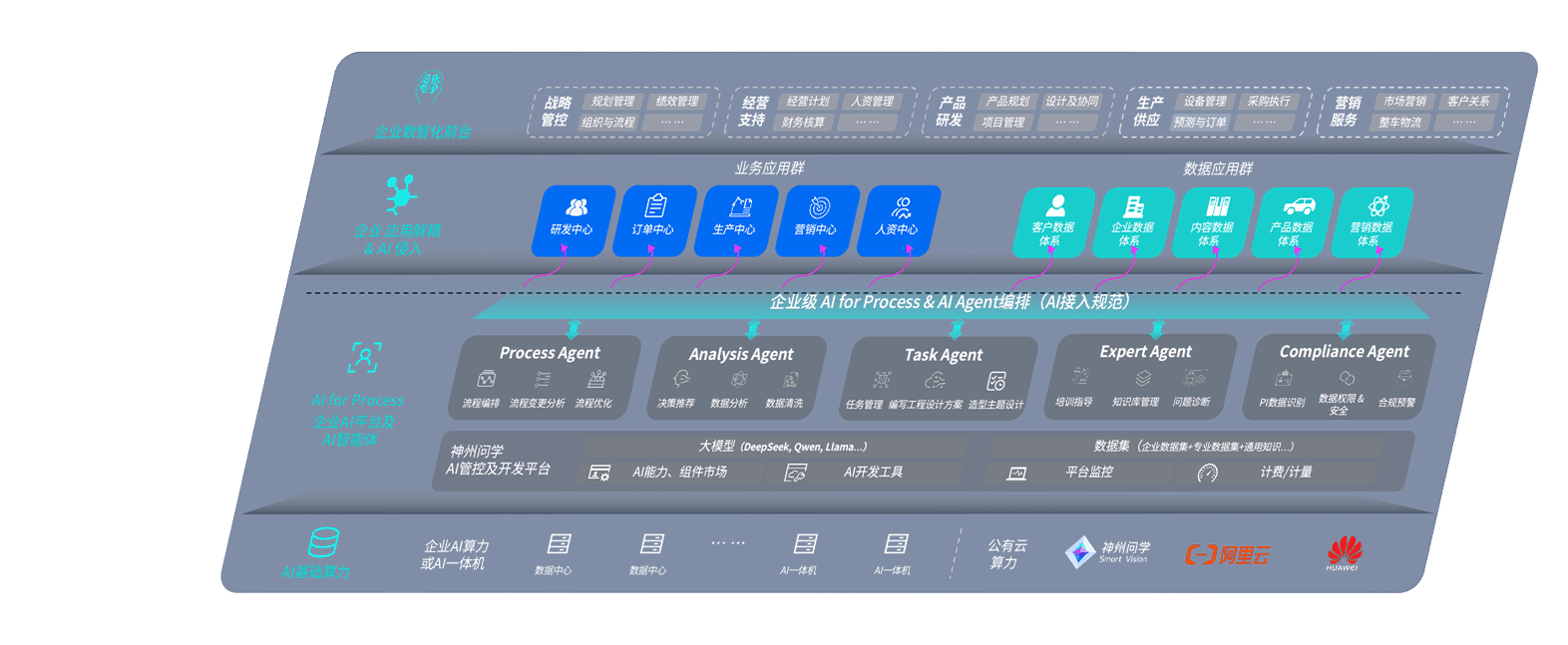 VSport问学智车解决方案是一套基于AI技术的汽车行业智能化系统,,,,覆盖从底层算力到顶层AI应用的全栈方案。。方案由算力层、、模型层和应用层组成:算力层,,,,方案支持多种一体机配置,,,,具备云端灵活部署、、、多云适配以及动态优化计算资源的能力;模型层,,,VSport问学平台版提供了企业级AI应用一站式构建与管理平台,,,,支持基于后训练强化技术的汽车企业专属模型的训练、、评测和运营;应用层,,VSport问学DeepSeek版提供包括超级员工、、智能招采、、智能营销、、智能客服、、、、AI for BI等一系列解决方案,,,,可助力汽车行业实现数字化转型,,,,让管理更智能、、响应更敏捷。。。