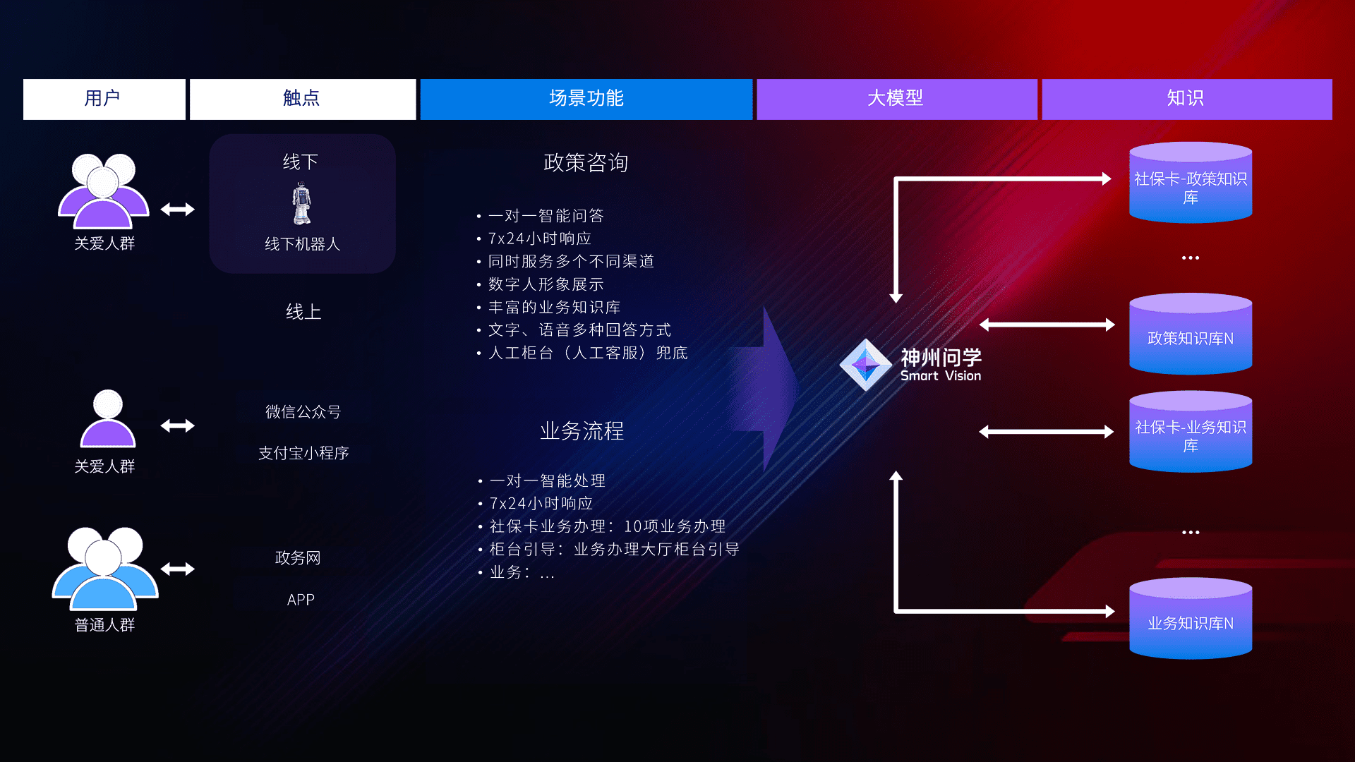 在服务大厅部署客服机器人,,,,在线上应用和小程序配置客服数字人,,,,724小时为群众解答常规问题,,客服机器人无法处理的,,,,转现场人工处理。。